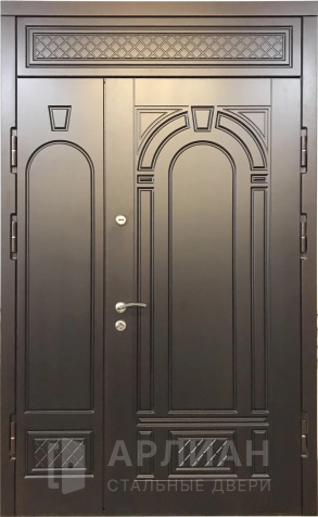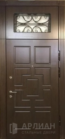 Металлическая входная дверь в коттедж с верхней фрамугой №10