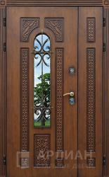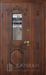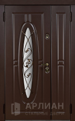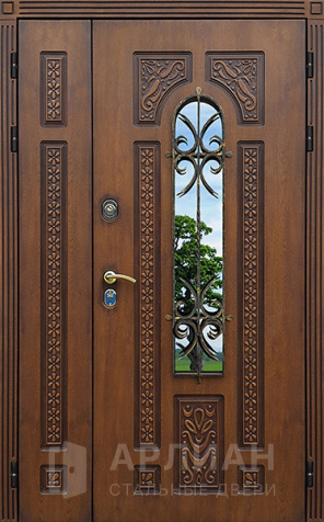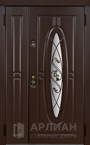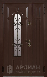 Двустворчатая металлическая дверь со стеклопакетом в коттедж  №17
