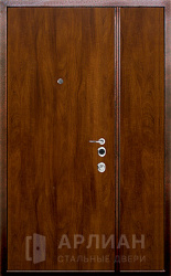 Двухстворчатая металлическая дверь коричневая с отделкой МДФ №7